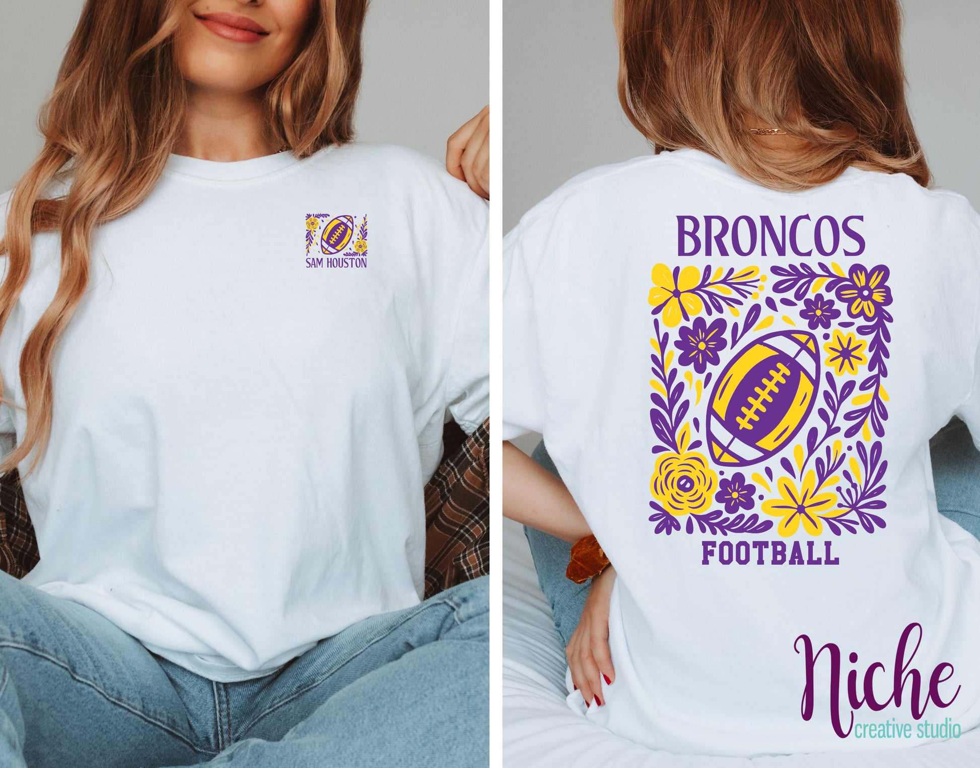 -BRO8265 **Combo** Floral Football Broncos Decal