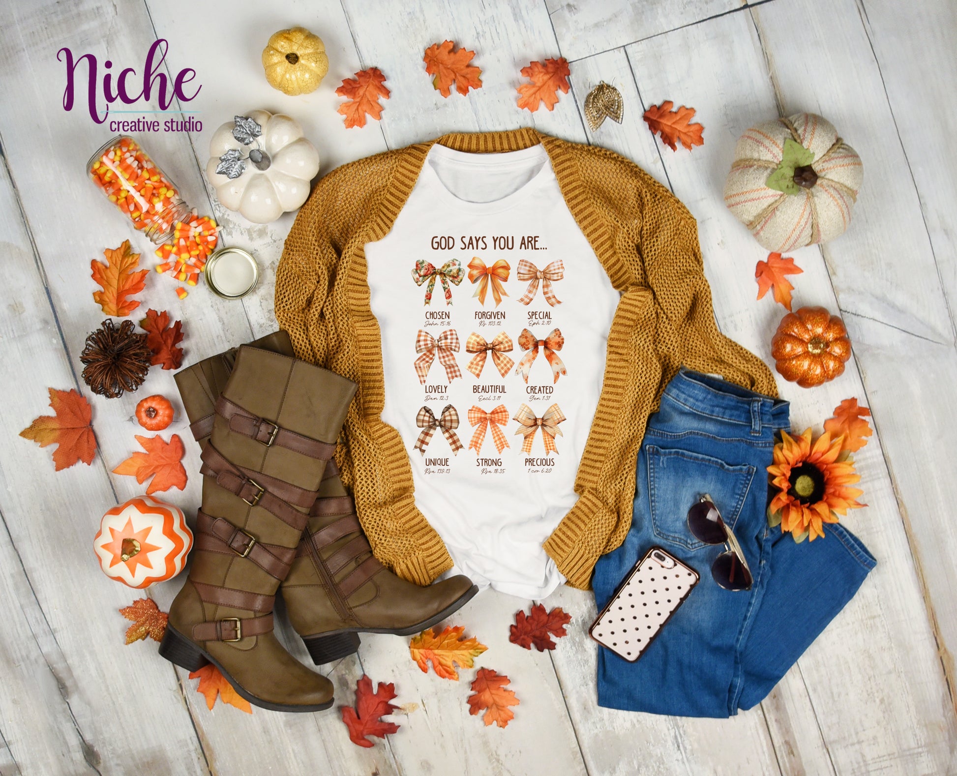 -FAL5207 Fall Faith Bow Collage Decal