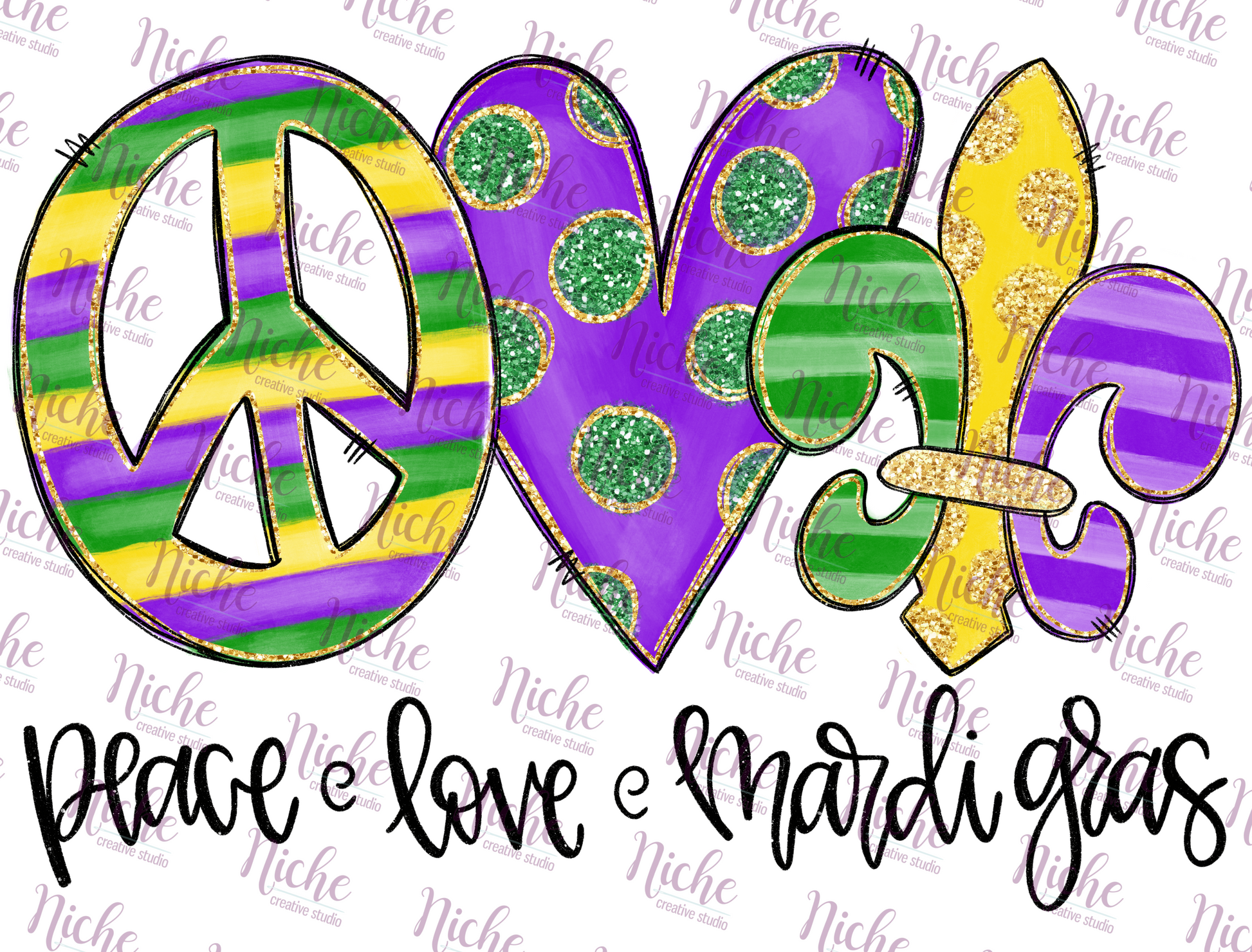 -MAR1108 Peace Love Mardi Gras Decal