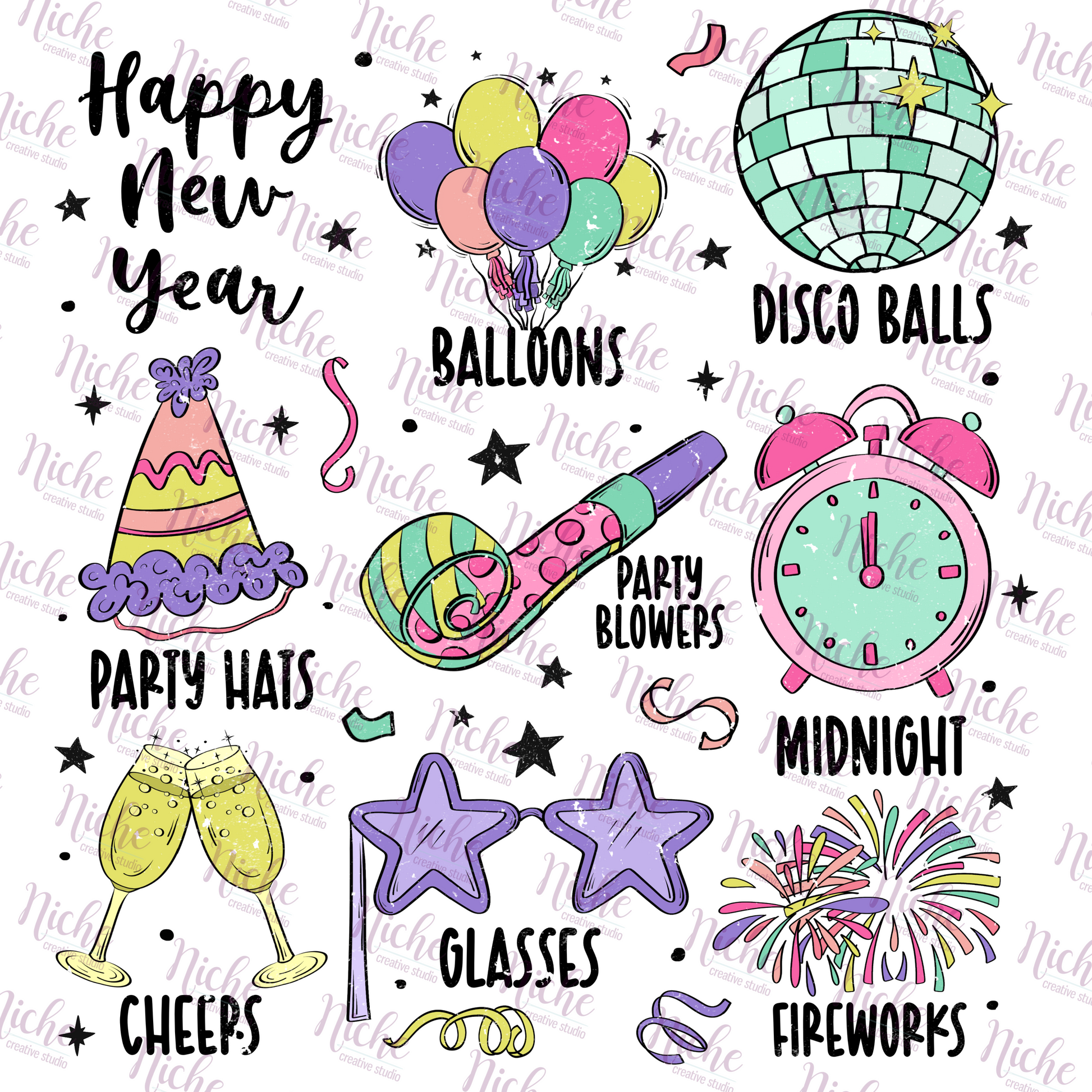 -NEW1152 Happy New Year Decal