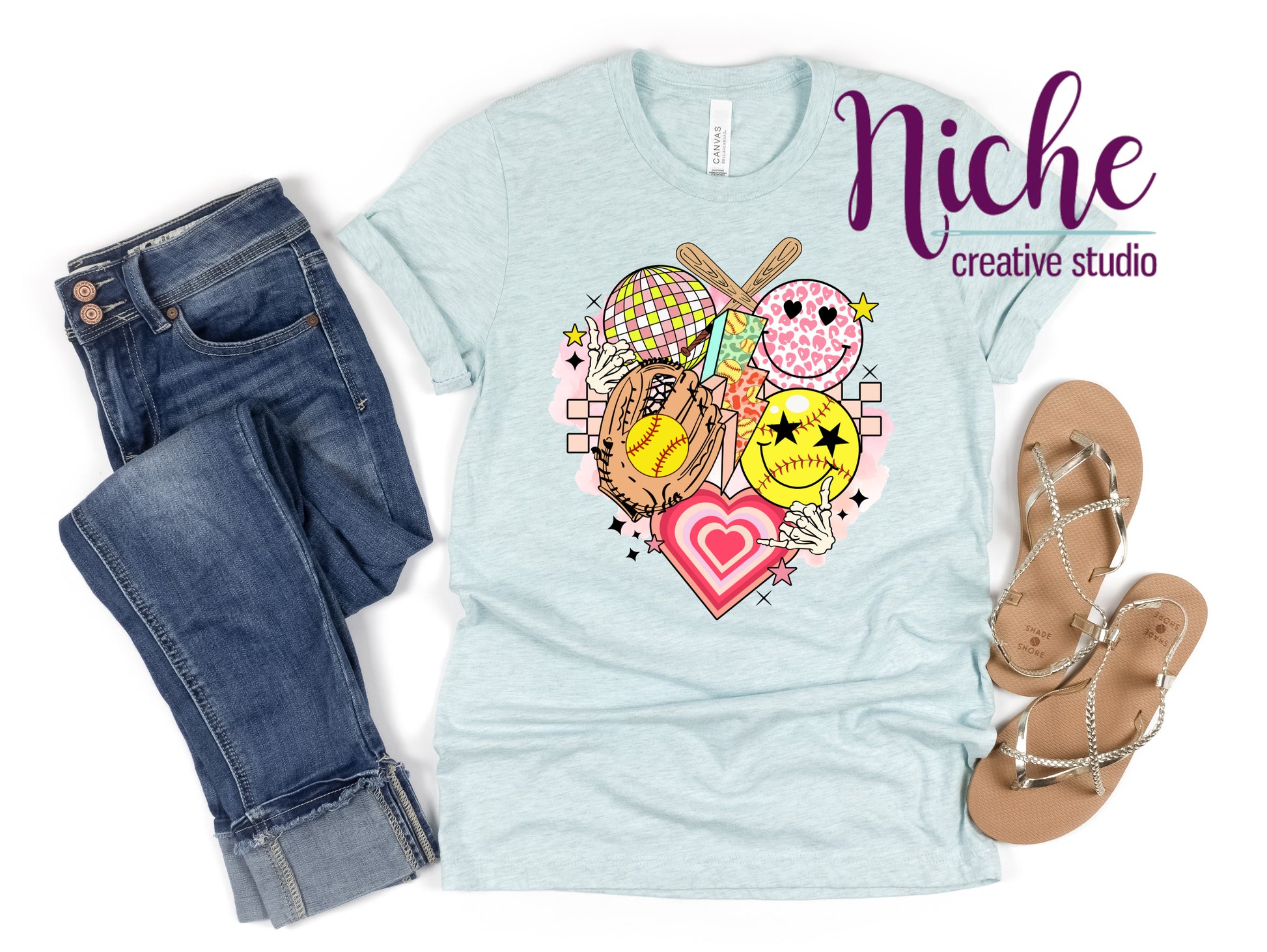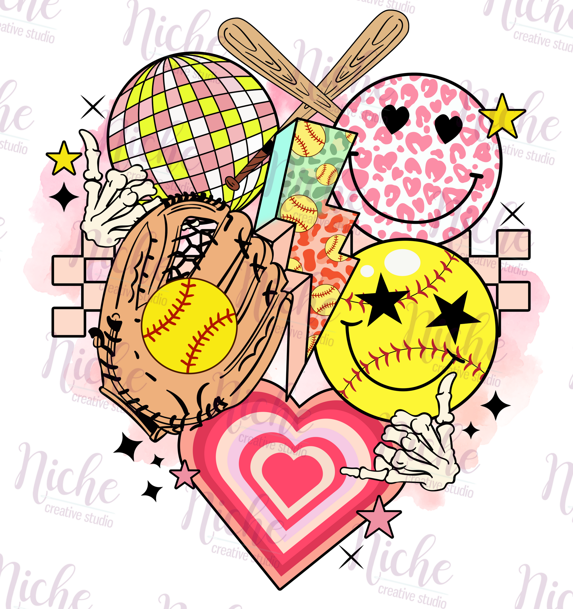 -SOF147 Smiley Softball Vibes Decal