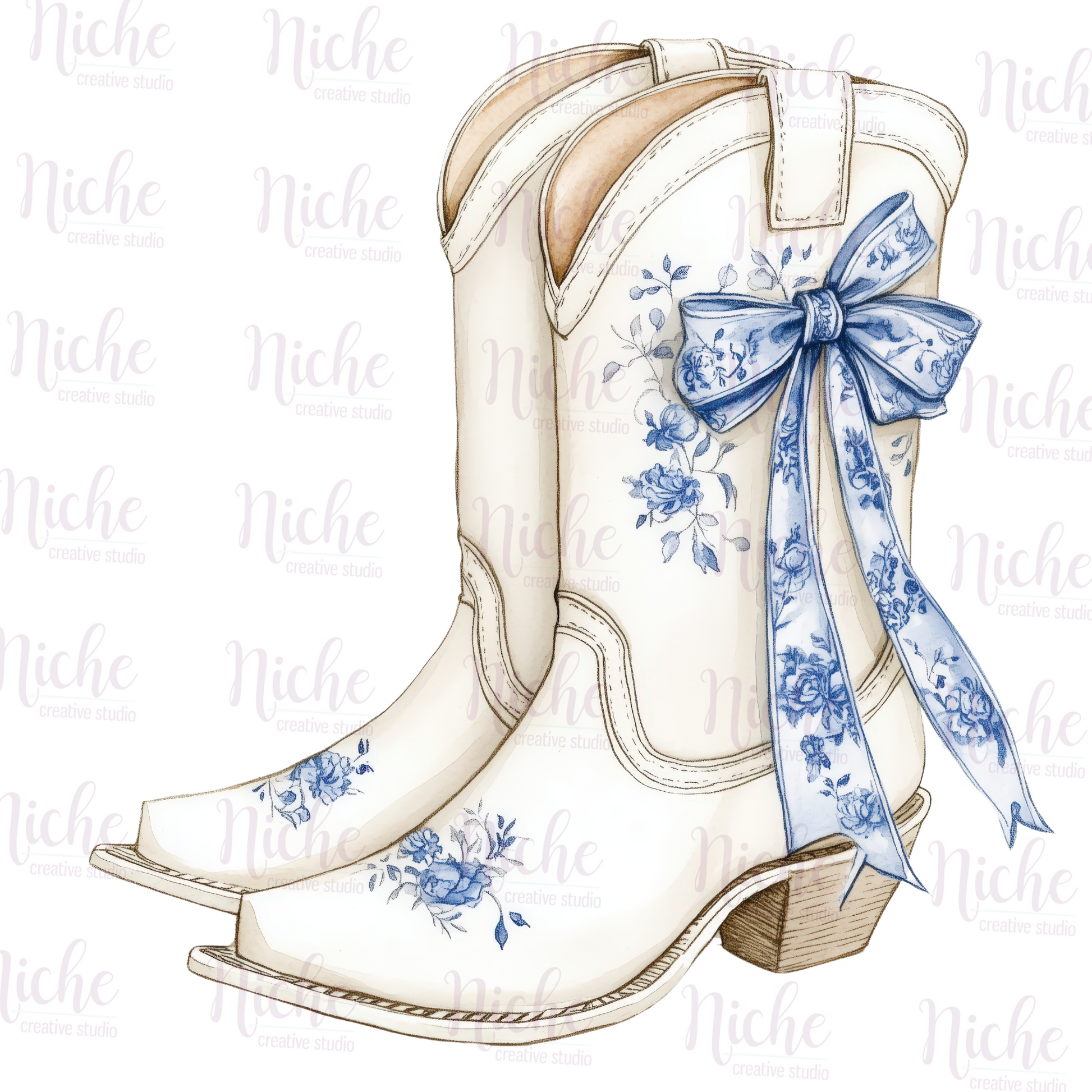 -WED6011 Blue Boots Chinoiserie Decal